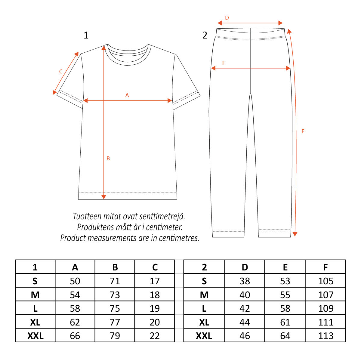 Dark blue, short-sleeved pyjama from our Moomin collection has full-length trousers with an elastic waistline. The pyjama shirt features a print of Stinky, and the trousers have a square print.