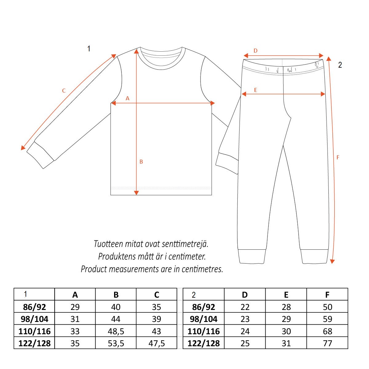 Melange grey children’s long-sleeved pyjama has full-length trousers. The two-piece pyjama features a print of Moomin characters building together.