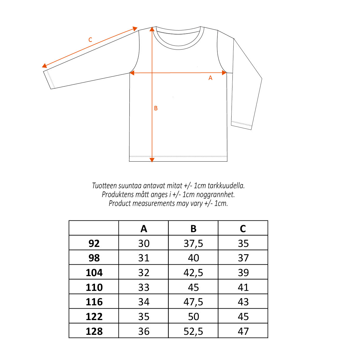 Children's Moomin shirt has a straight fit, long sleeves, and a round neckline. The shirt features the fun Busy Bees print. 95 % certified organic cotton, 5 % elastane. Designed in Finland.