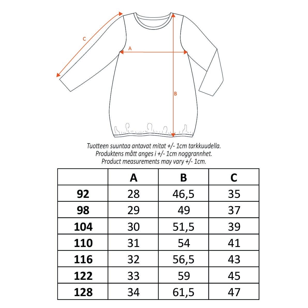 Children's Moomin tunic has long sleeves, a round neckline, and an elastic rubberband on the hem. The tunic features the playful Laziness print, and it is made from soft organic cotton blend. 95 % certified organic cotton, 5 % elastane. Designed in Finland.