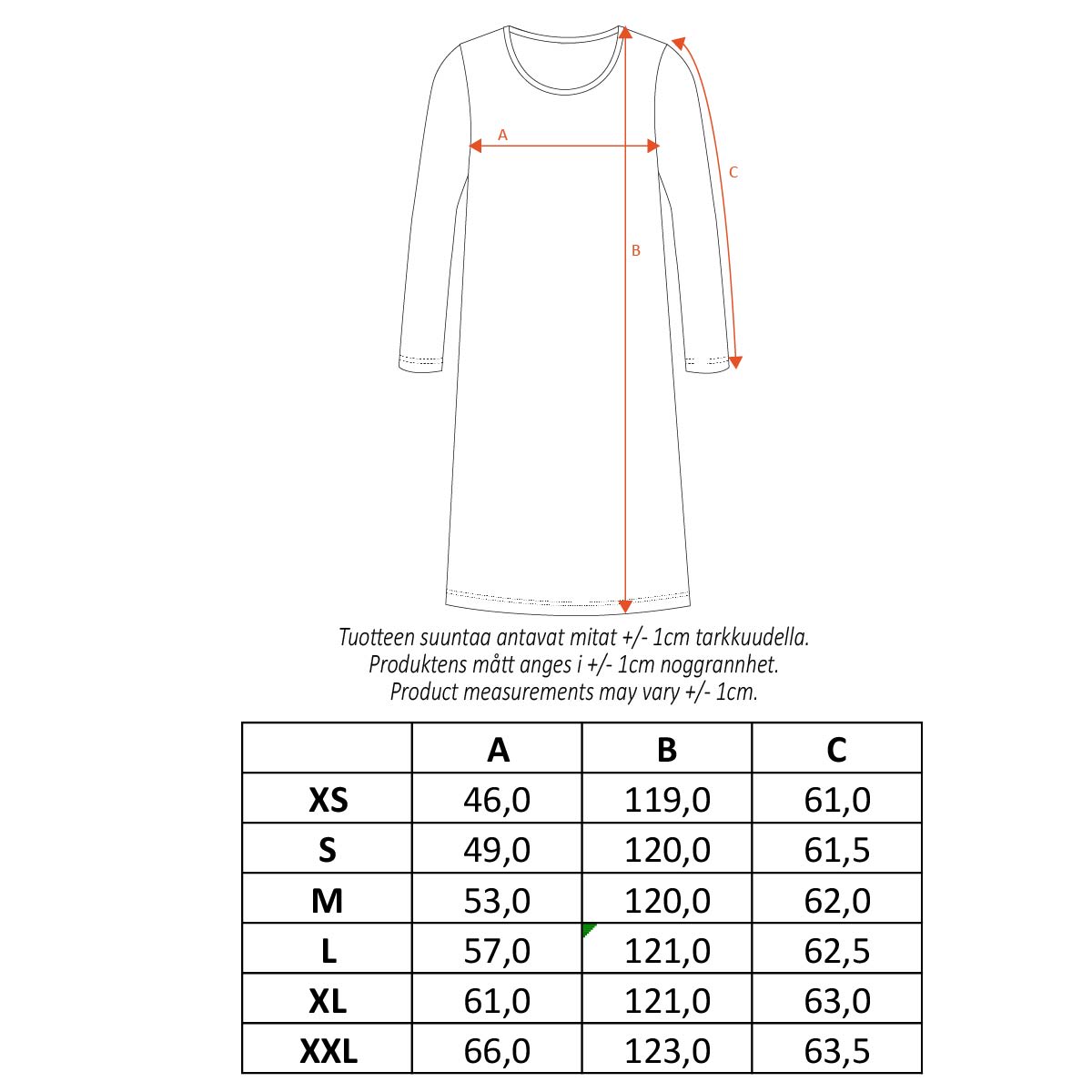 Colourful long-sleeved, long nightgown has an A line fit, and it features the abundant Leafy print, starring Mymble, Little My, and Snorkmaiden.