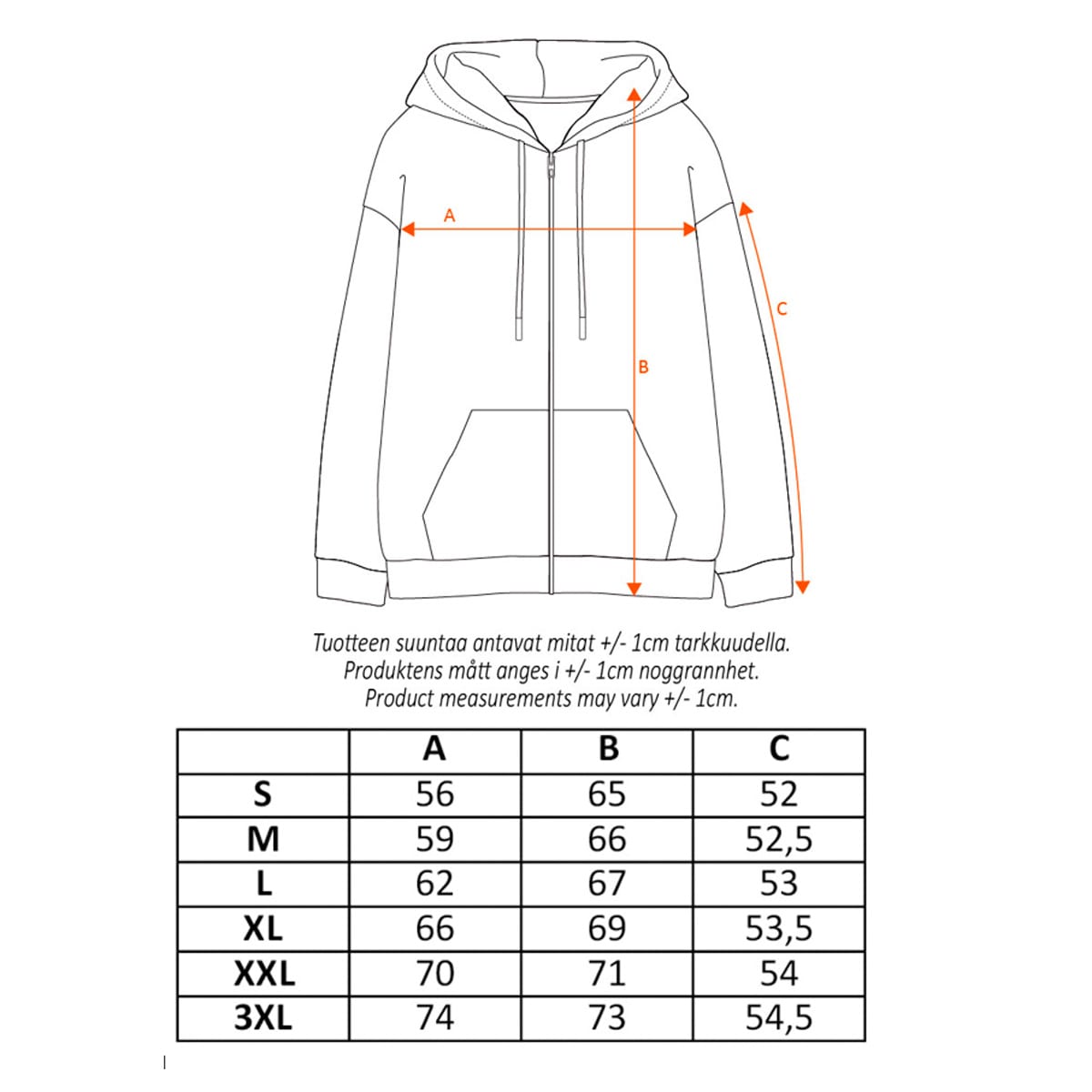Black long-sleeved hoodie from our Moomin collection has a comfortable, relaxed fit, a zipper, a hood, and a lighter loopback finish on the inside. There are flowers on the front, and there is a print of Little My in a flower meadow in the back.