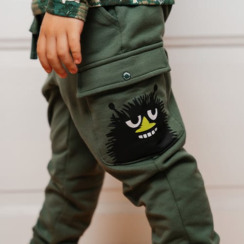 ”Camouflage is inspired by the winter forest and its shades of green. They work as camouflage – did you notice that the Groke is present in the print, too?” our designer describes the print.