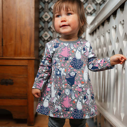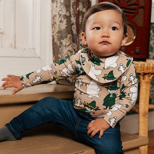 The Moomin winter collection has something for all occasions, from normal days at home to daycare and school. Dress your little one for birthday parties, relaxed moments at home with the family, and colder days of winter! We have not forgotten how much fun it is to match, so we have matching clothes for babies in sizes 56 to 86 cm and children in sizes 92 to 121 cm, and some clothes are available up to 128 cm. Perfection!