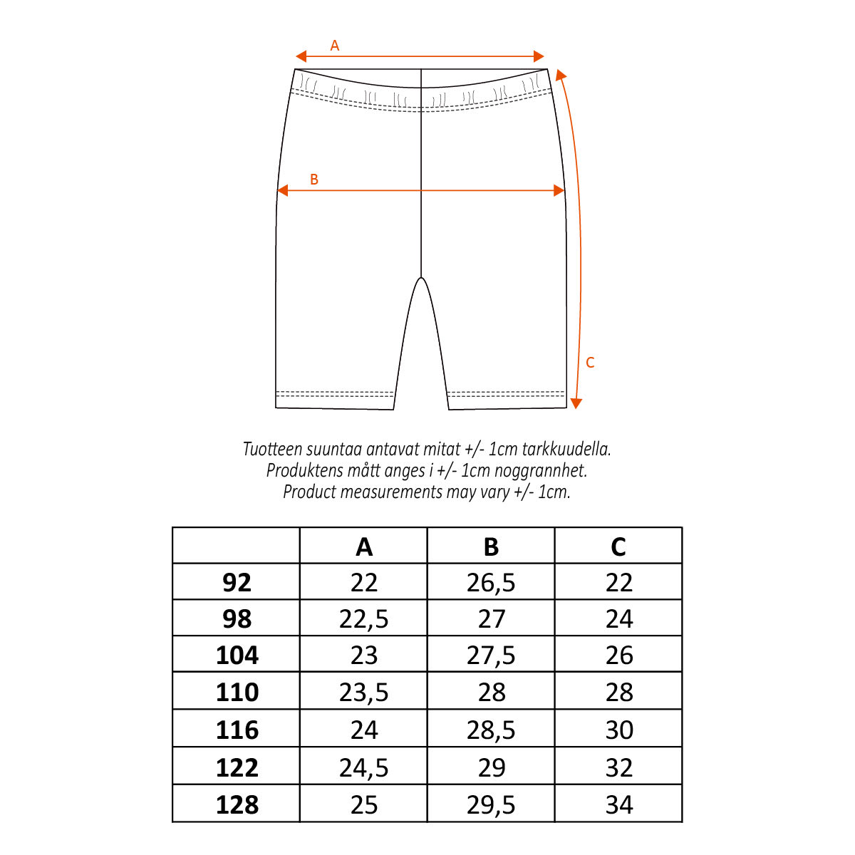 Colourful children’s biker shorts with an elastic waistline. The putty-coloured shirts have a fun square print and a print of Pippi, holding cakes.